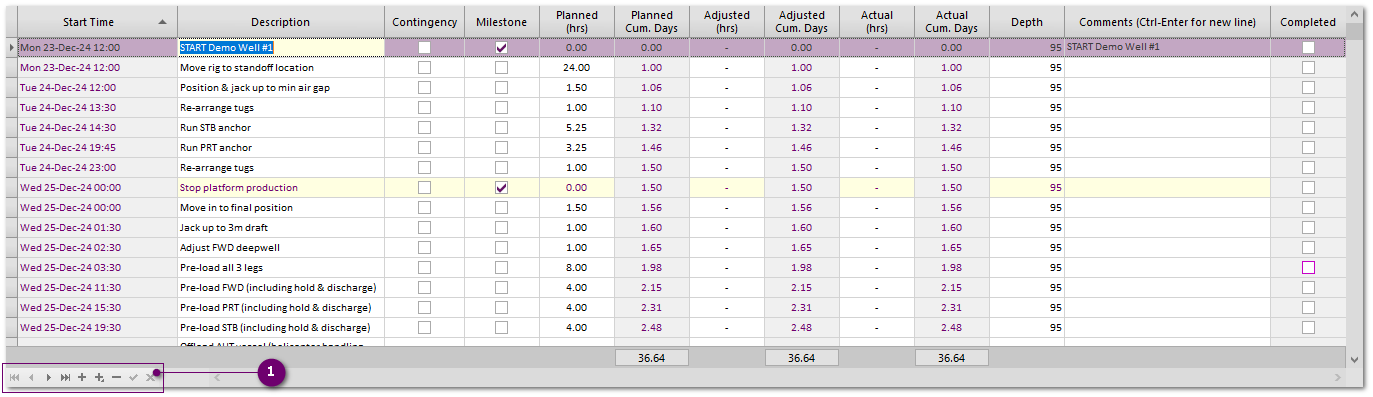 At the bottom of each data grid, a so-called Data Navigator is displayed.