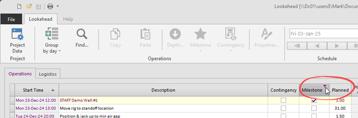 The Operations are input in a data grid. Data grids display multiple items in a tabular form and allow adding, modifying and deleting of items.