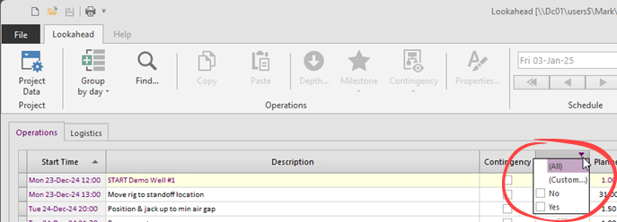 Clicking the funnel icon will drop down a filter menu. Clicking one or more options will filter the grid data for these values.