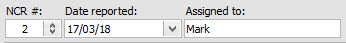 These fields are recorded to identify the NCR and the person assigned to ensure follow-up, investigation and close out of the NCR. The NCR # field is mandatory and may have any value, but within the context of a well it should be unique (i.e. no duplicate numbers). |
