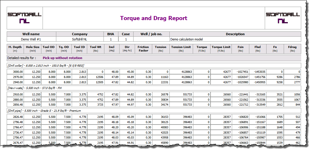 The detailed results will print a record for each calculation point for each operational mode. For a deep well (high bit depth) this may result in a long report taking a long time to prepare.