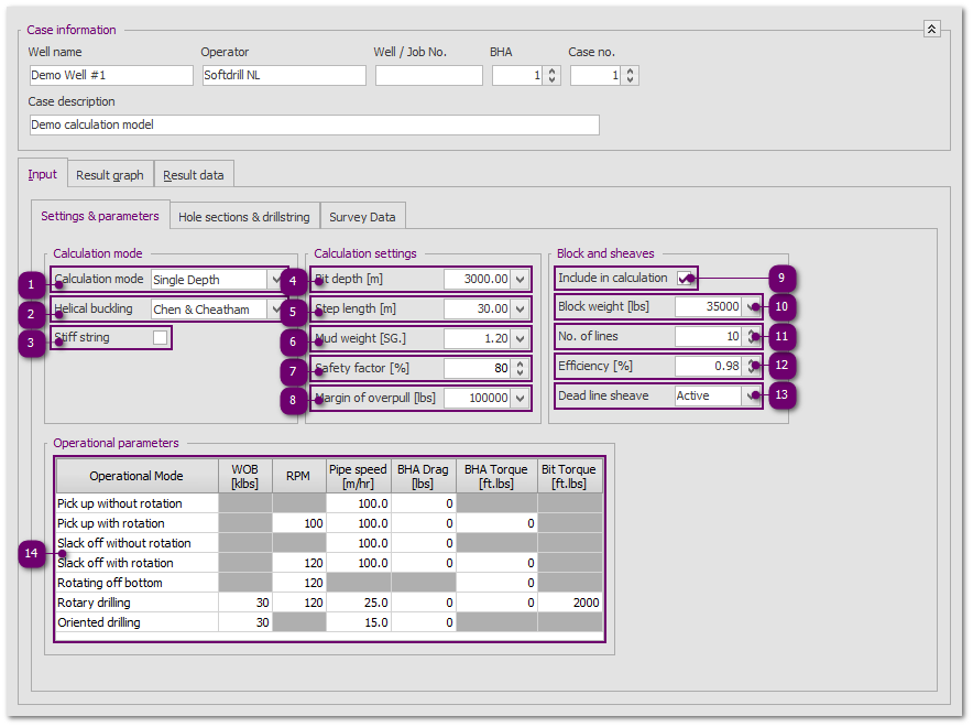 The Settings & Parameters tab is for input of general calculation settings and parameters of the individual operational modes: