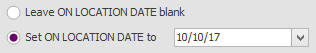 This selection determines what happens with the On Location field for the copied items. The field may be left blank, but normally this would be set to the date the items were transferred from one well to the next.
