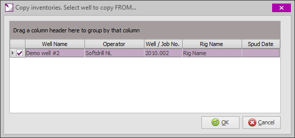 Select this option to copy the equipment inventory (drilling tools) from the selected well to the current well. |